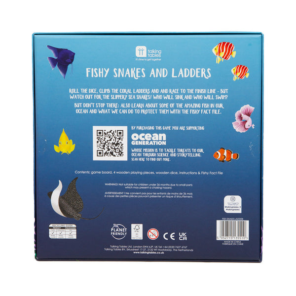 Its snakes and ladders… but with fish. Part of our “School of Fish” range, we’ve dedicated ourselves to making this product completely plastic free. Better yet, a portion of all sales will go to the fish-celebrating charity Ocean Generation. Introduce your kids to this classic game with a twist: featuring various fish species, starfish, seahorses and even sharks. A great addition to your family games night that’s sure to make a splash.