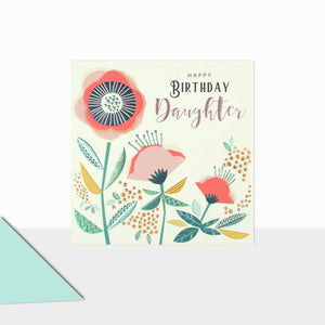A contemporary striped design from the Breton Collection, featuring beautiful flowers and the caption 'Happy Birthday Daughter'. By Laura Darrington.
