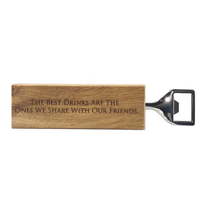 A handy bottle opener set into a block of Scottish oak with the words ‘The Best Drinks Are The Ones We Share With Our Friends’ engraved.